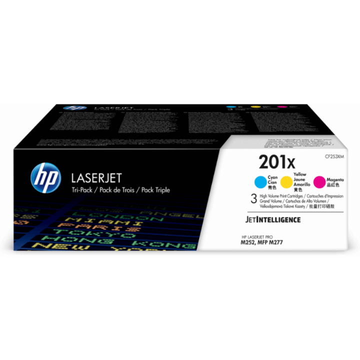 HP 201X 3er-Pack Cyan/Magenta/Gelb Original LaserJet Tonerkartuschen mit hoher Reichweite. Farbtoner-Seitenleistung: 2300 Seiten, Druckfarben: Cyan, Magenta, Gelb, Menge pro Packung: 3 Stück(e)